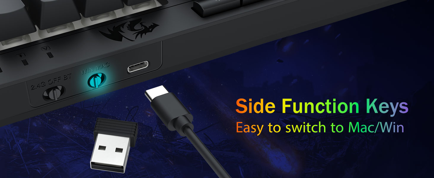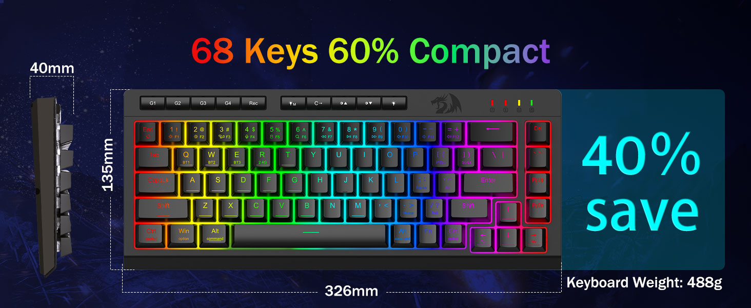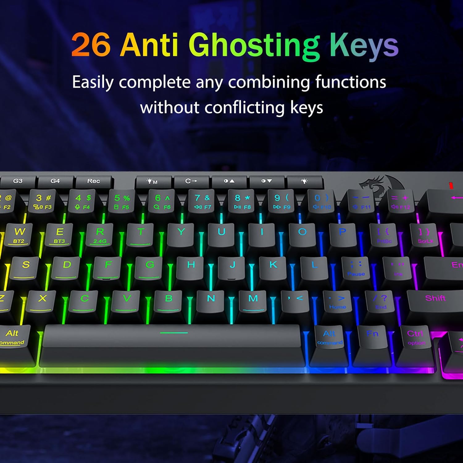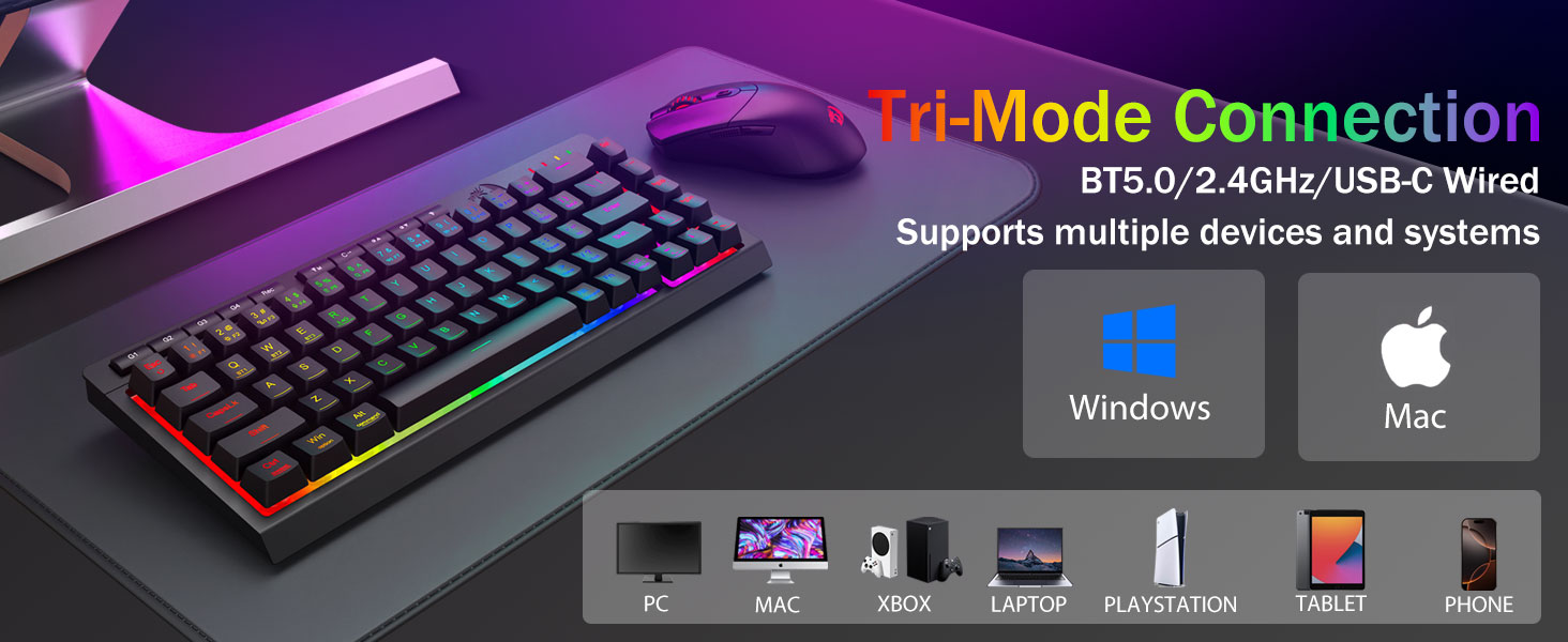 Блацк К519 Про преносива бежична тастатура за игре из Редрагона, коју производи Цхуангкуан, представља пример професионалног инжењеринга за играче и професионалце. Његов свестрани дизајн у три режима подржава стабилан Блуетоотх, бежичне везе од 2,4 ГХз ниске латенције и УСБ-Ц жичане везе, омогућавајући лако пребацивање између три уређаја истовремено. Тастатура укључује наменске макро тастере који се могу у потпуности прилагодити преко интуитивног софтвера, омогућавајући корисницима да додељују сложене команде или пречице за побољшану продуктивност и ефикасност играња. Динамичко РГБ осветљење са вишеструким ефектима персонализује подешавање, док Н-тастер ролловер и анти-гхостинг обезбеђују да се сваки притисак на тастер тачно региструје током интензивних сесија.