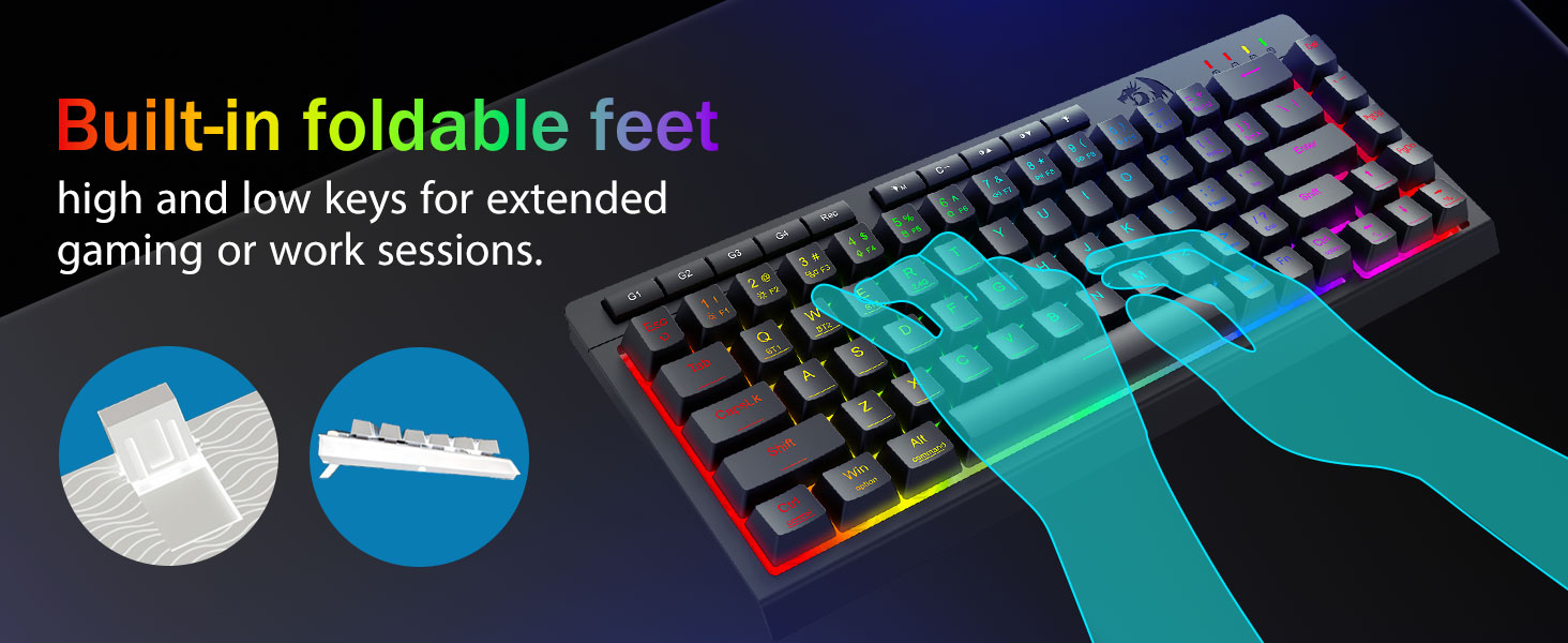 Имерзивно РГБ осветљење и прилагодљиви амбијент -Ослободите 16,8 милиона РГБ боја са 8 унапред подешених режима (Раинбов Ваве, Реацтиве Типинг) + 6 „уради сам“ профила. Подесите осветљеност од живог сјаја до скривеног режима—идеално за касно ноћно играње игара или коришћење у канцеларији.
