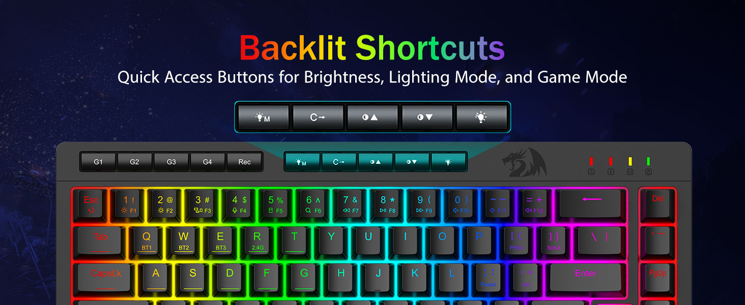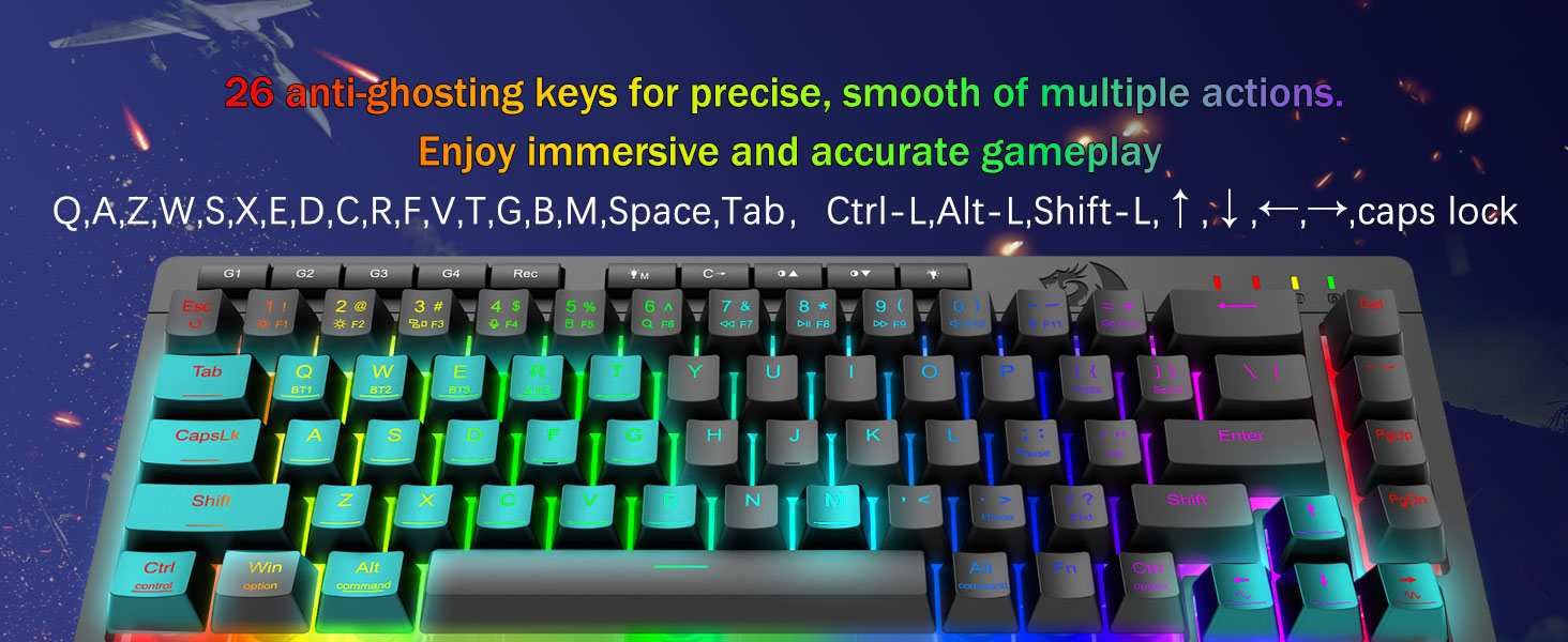 Професионалне перформансе игара и наменске контроле са позадинским осветљењем -Садржи тастере против гхостинга (тастери са доњом цртом) који омогућавају да 26 тастера раде истовремено за брзе и прецизне одговоре у игри на начин на који сте намеравали. Дугмад за брзи приступ за осветљење, режим осветљења и режим игре за брзо подешавање осветљености, профила осветљења и омогућавање режима игре притиском на дугме.