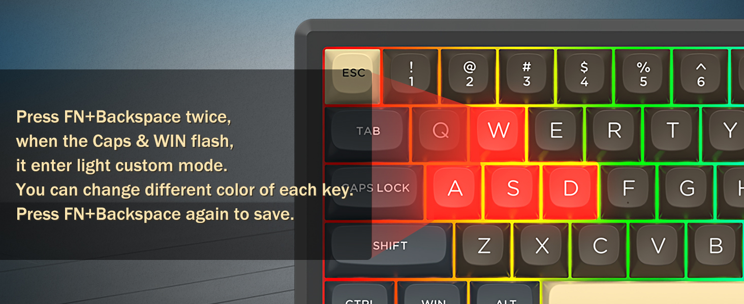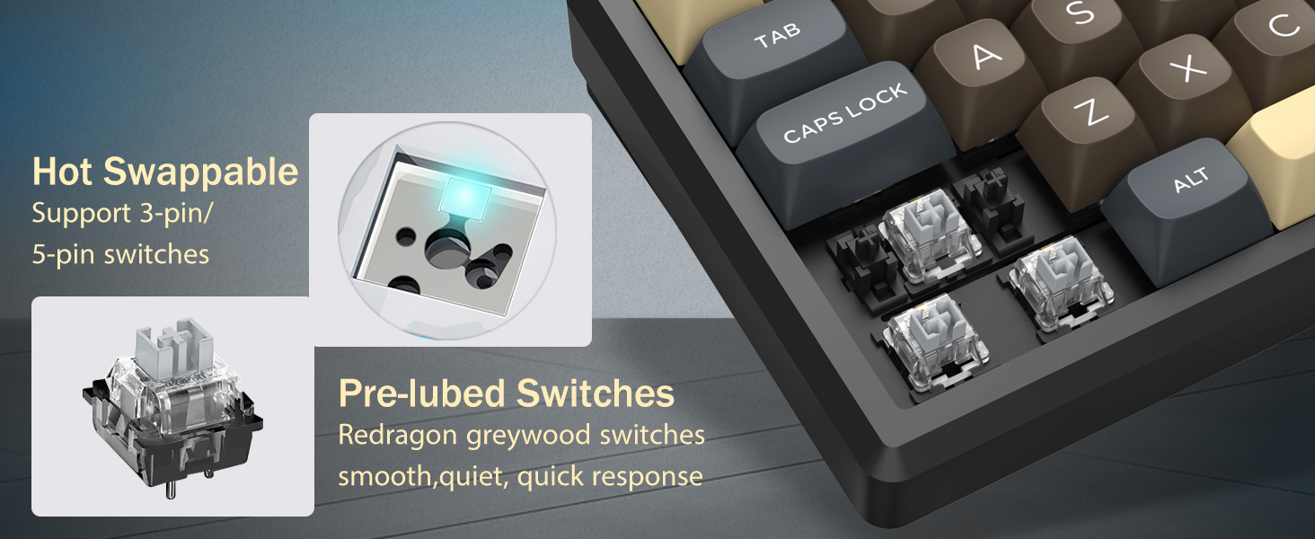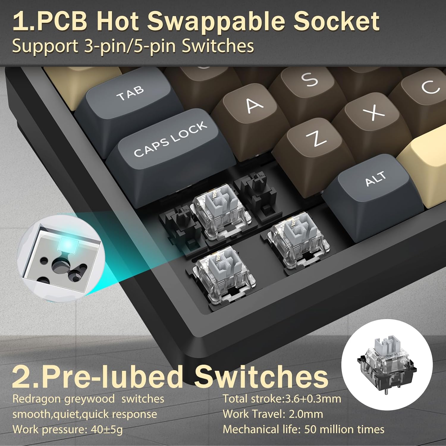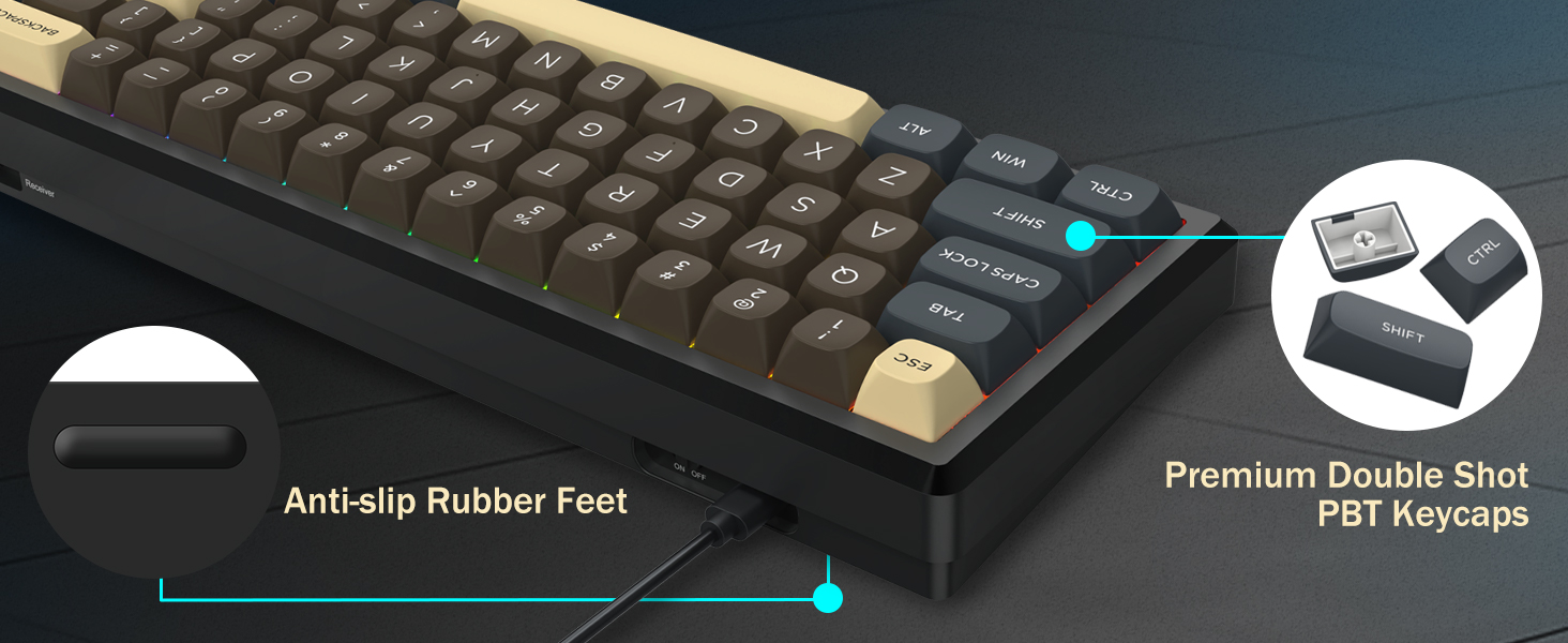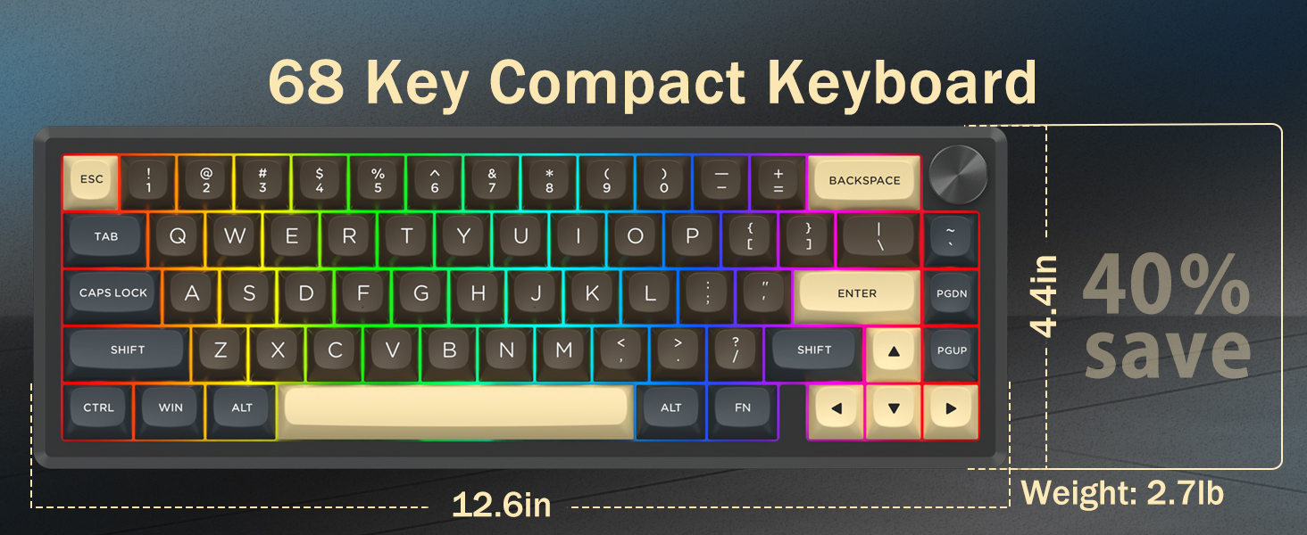 Са својим распоредом од 60%, ова тастатура уклања небитне тастере док задржава основну функционалност кроз комбинације тастера. Овај дизајн помаже у смањењу нереда на столу и пружа више простора за кретање миша, што га чини погодним и за играње и за продуктивна окружења.