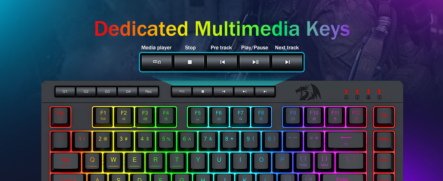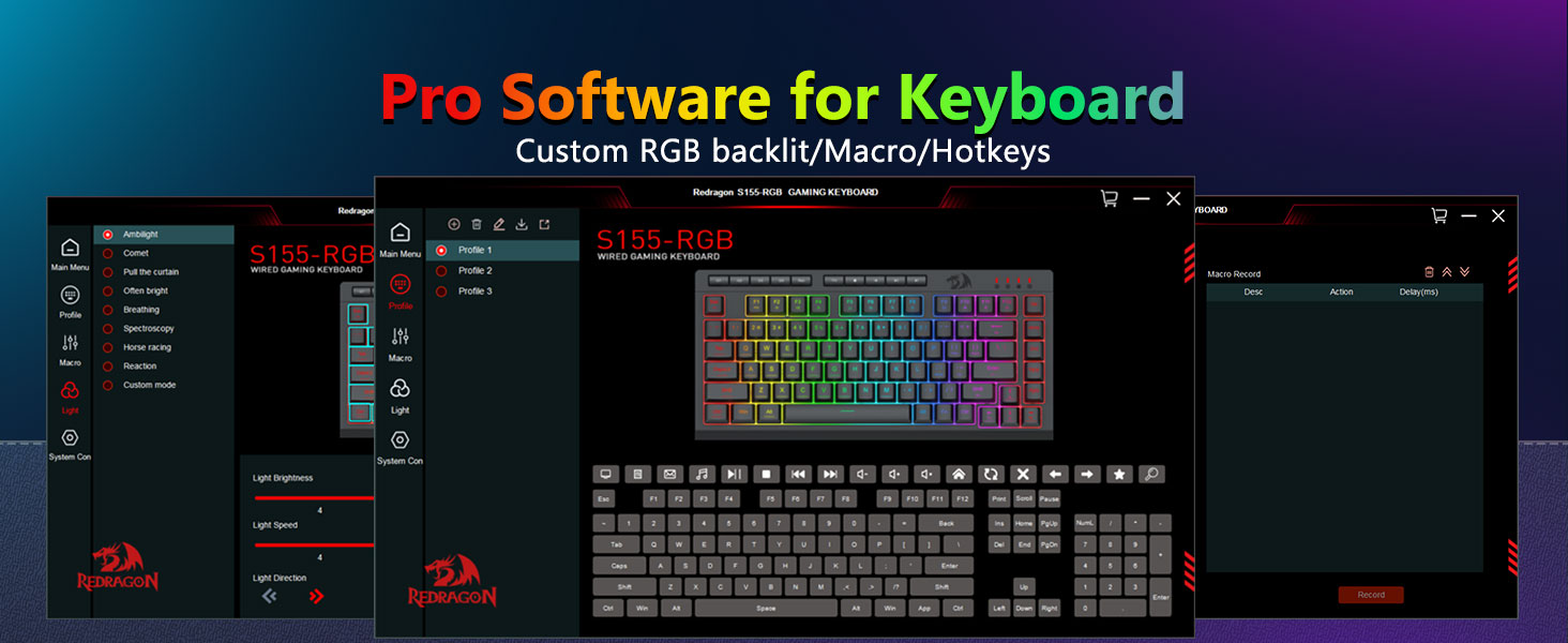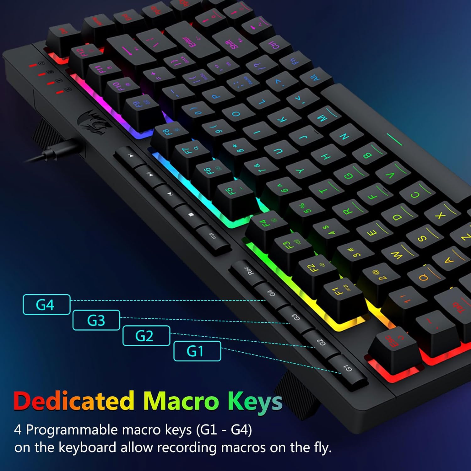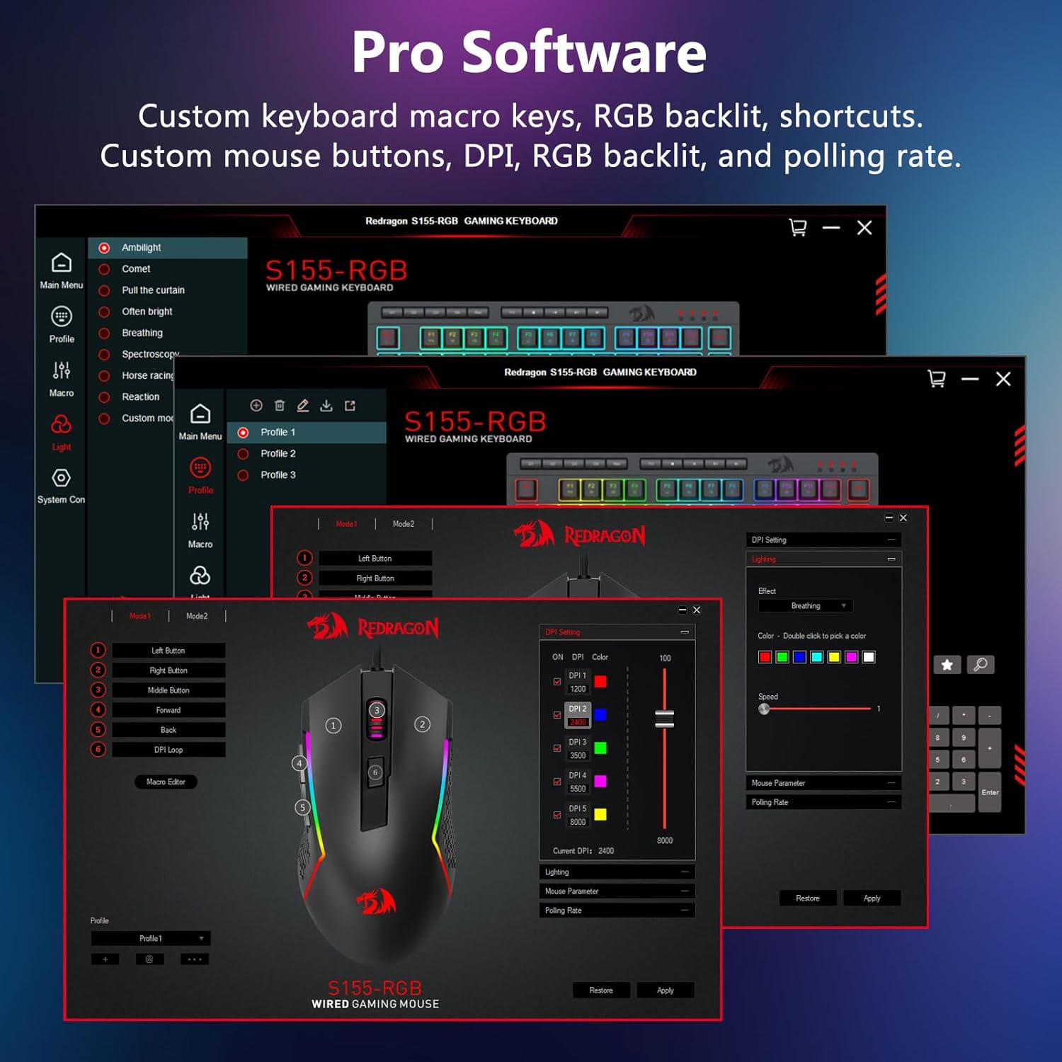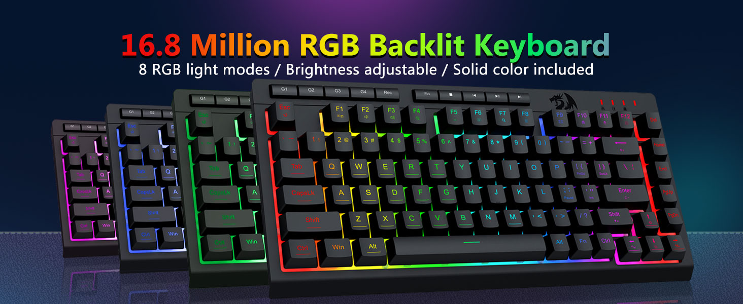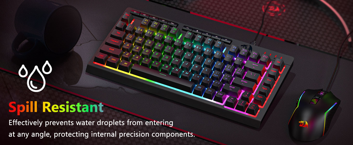 【РГБ тастатура и миш за игре】Тастатура за игре има 8 РГБ режима осветљења које можете изабрати, а миш за игре има 8 светлосних ефеката за пребацивање између, а тастатура се може подесити за 4 нивоа брзине и осветљености према вашим жељама. Капице тастера нуде јасно уједначено позадинско осветљење. Било да је сет једно светло, са променљивим светлосним ефектима или га нема уопште, Редрагон тастатура и миш за играње ће задовољити ваше потребе!