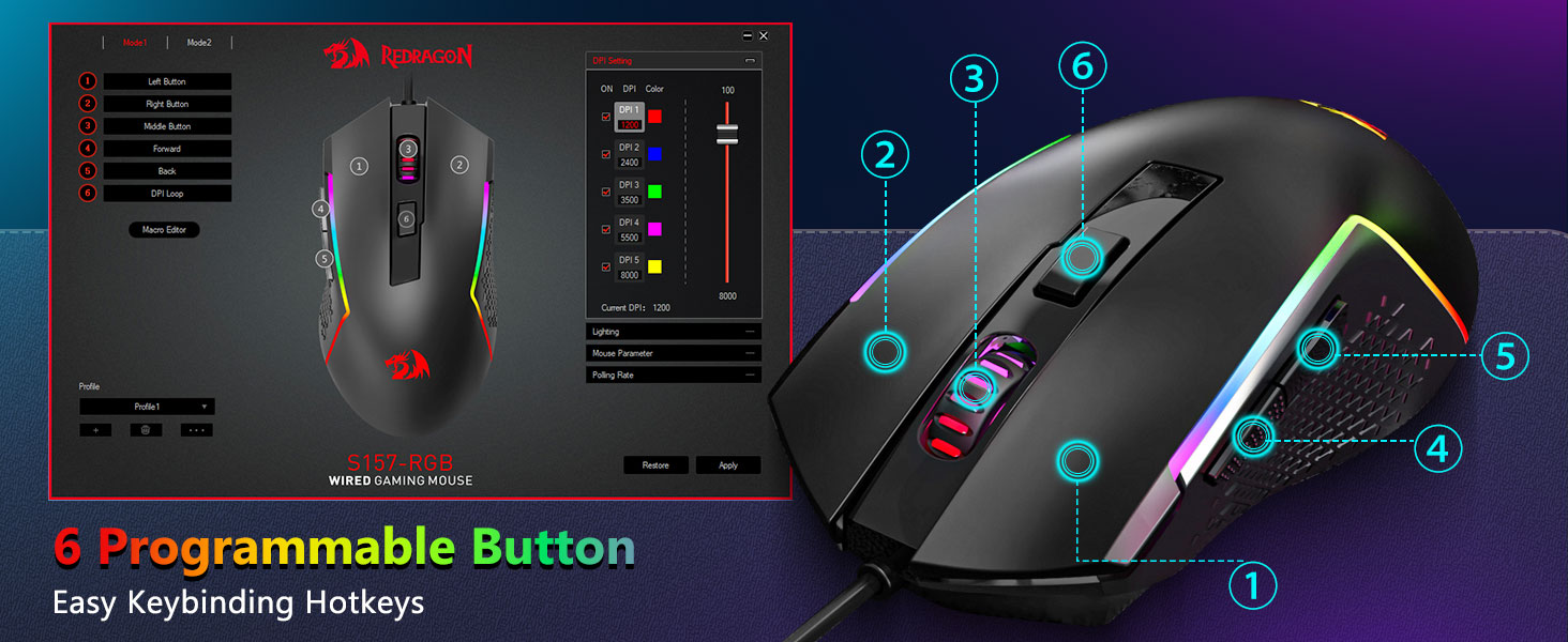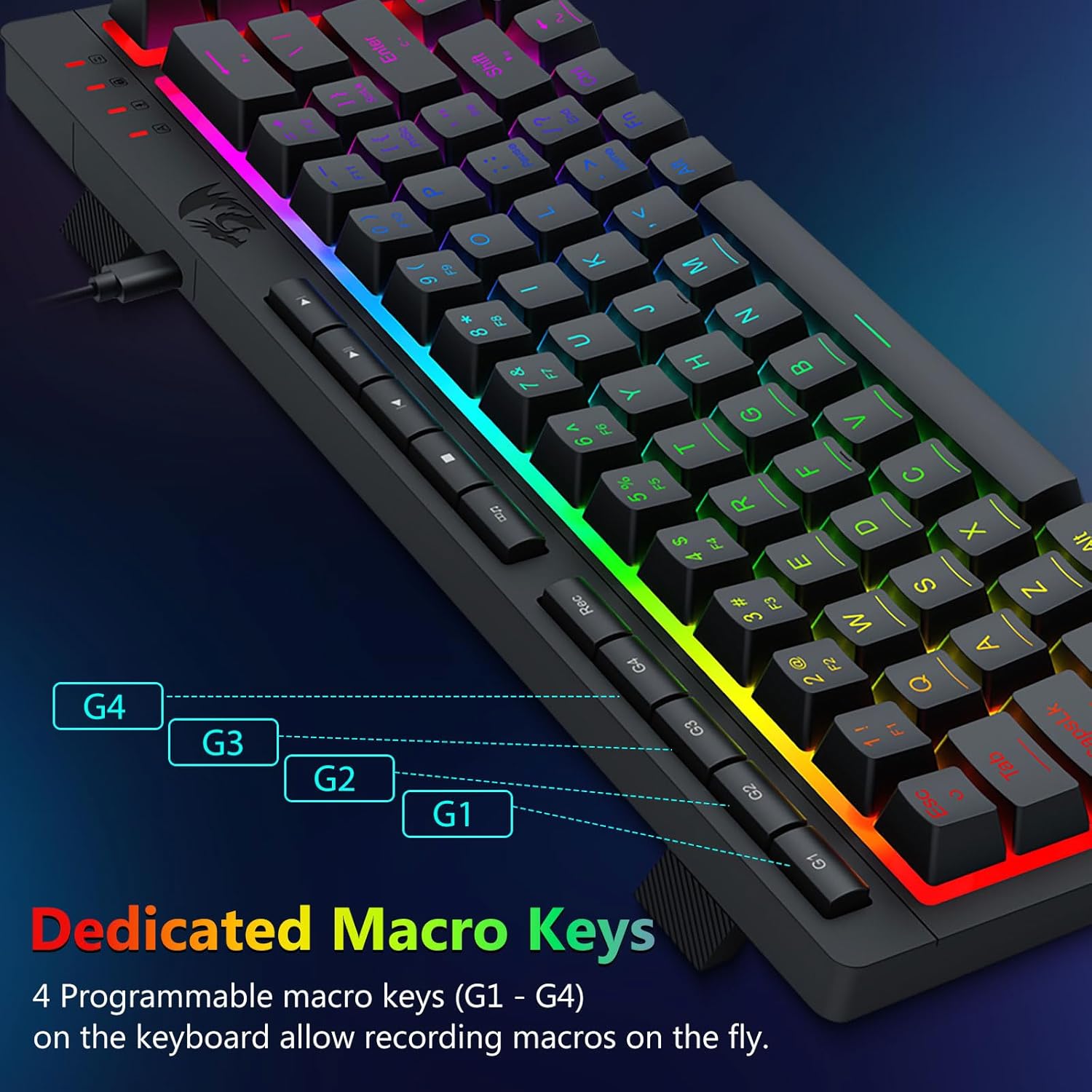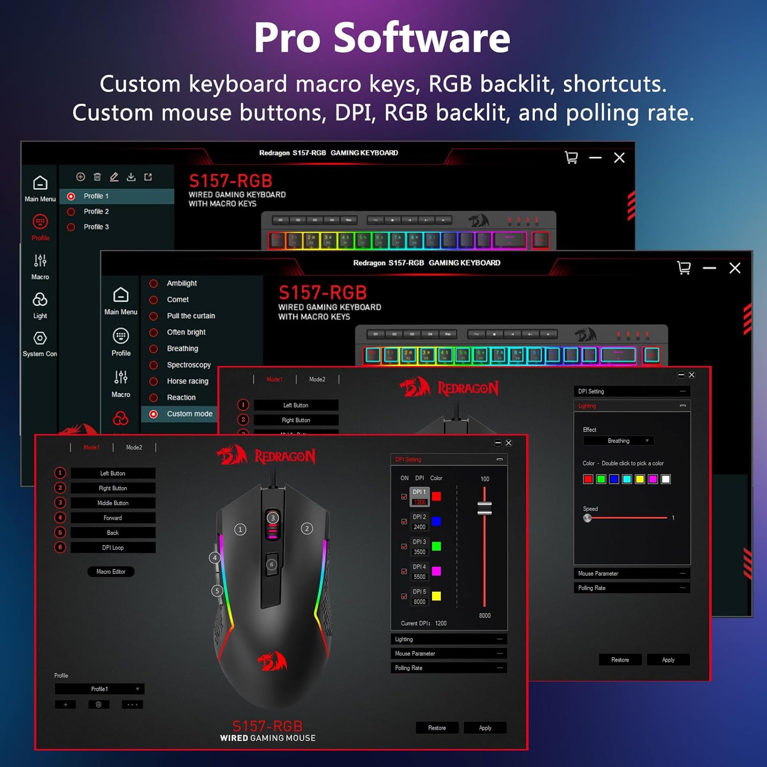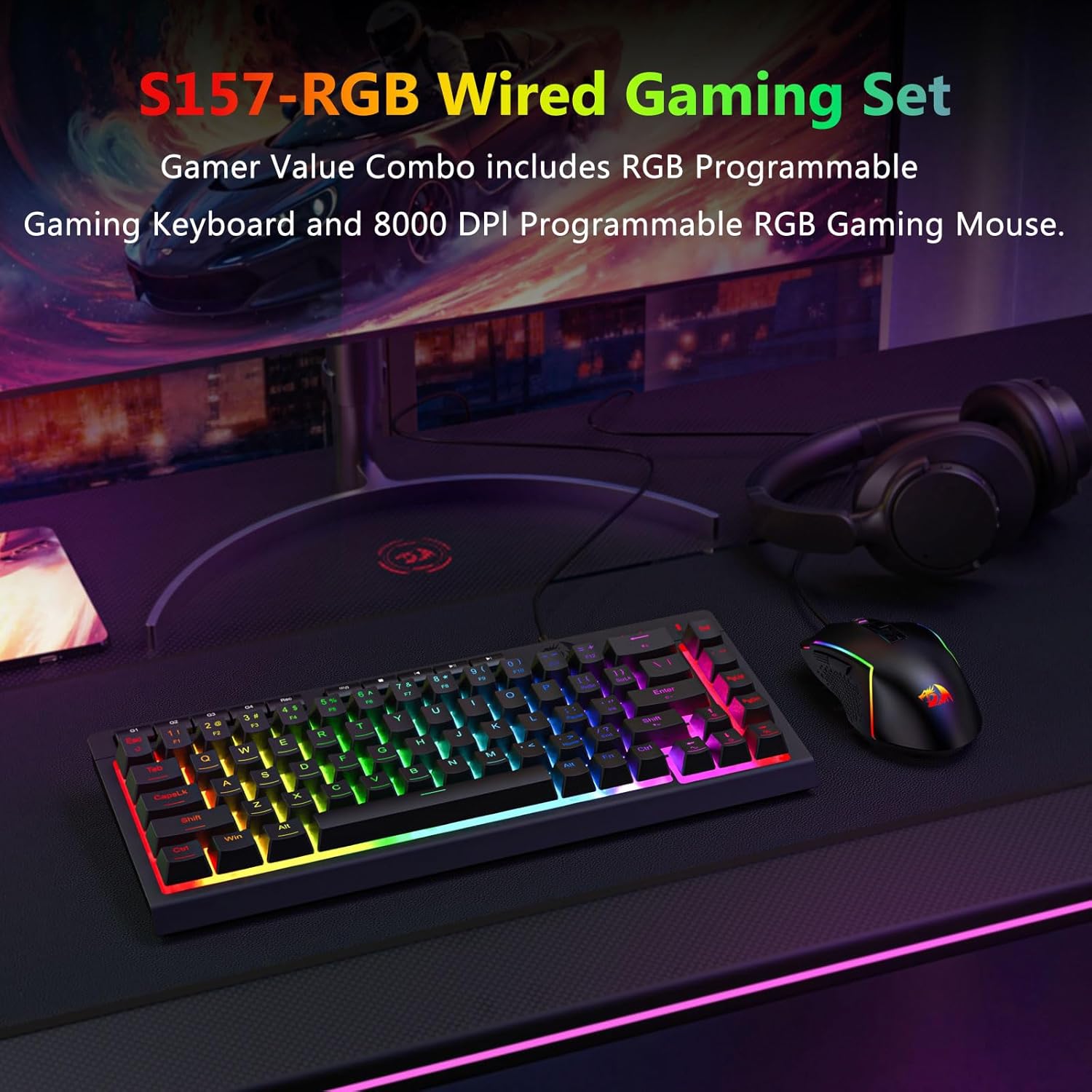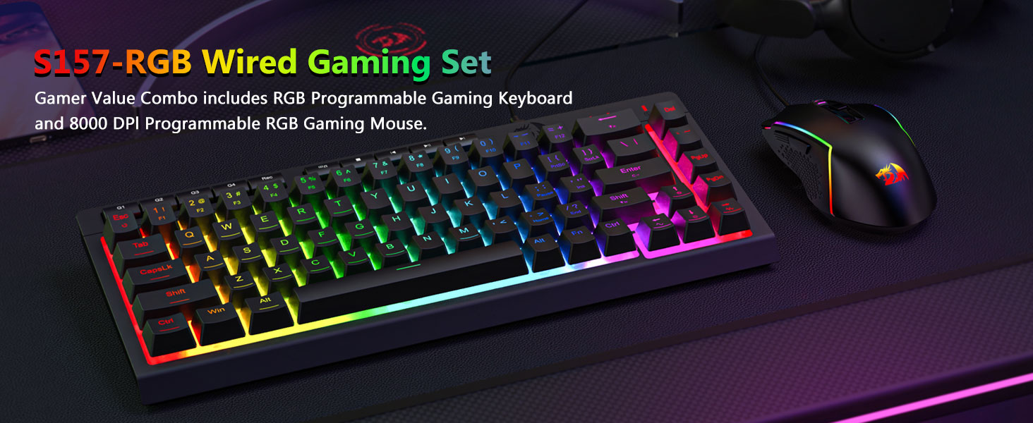 Комбинација жичане тастатуре и миша за игре са црним С157 РГБ позадинским осветљењем нуди практичну комбинацију перформанси, издржљивости и употребљивости. Његова тастатура пуне величине, миш који реагује и стабилна жичана веза чине га погодним и за играње и за свакодневне рачунарске задатке.