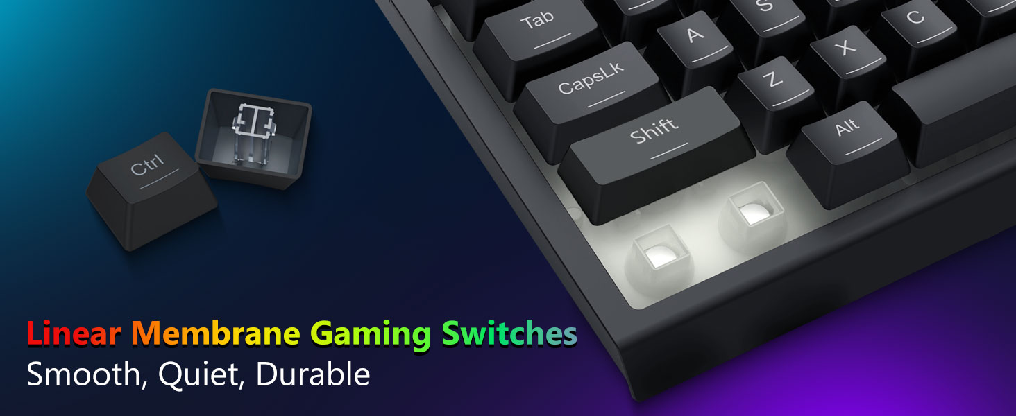 Тастери су дизајнирани да обезбеде доследну повратну информацију и уравнотежено активирање. Ово обезбеђује прецизно куцање и поуздан унос током играња игара или коришћења у канцеларији.
