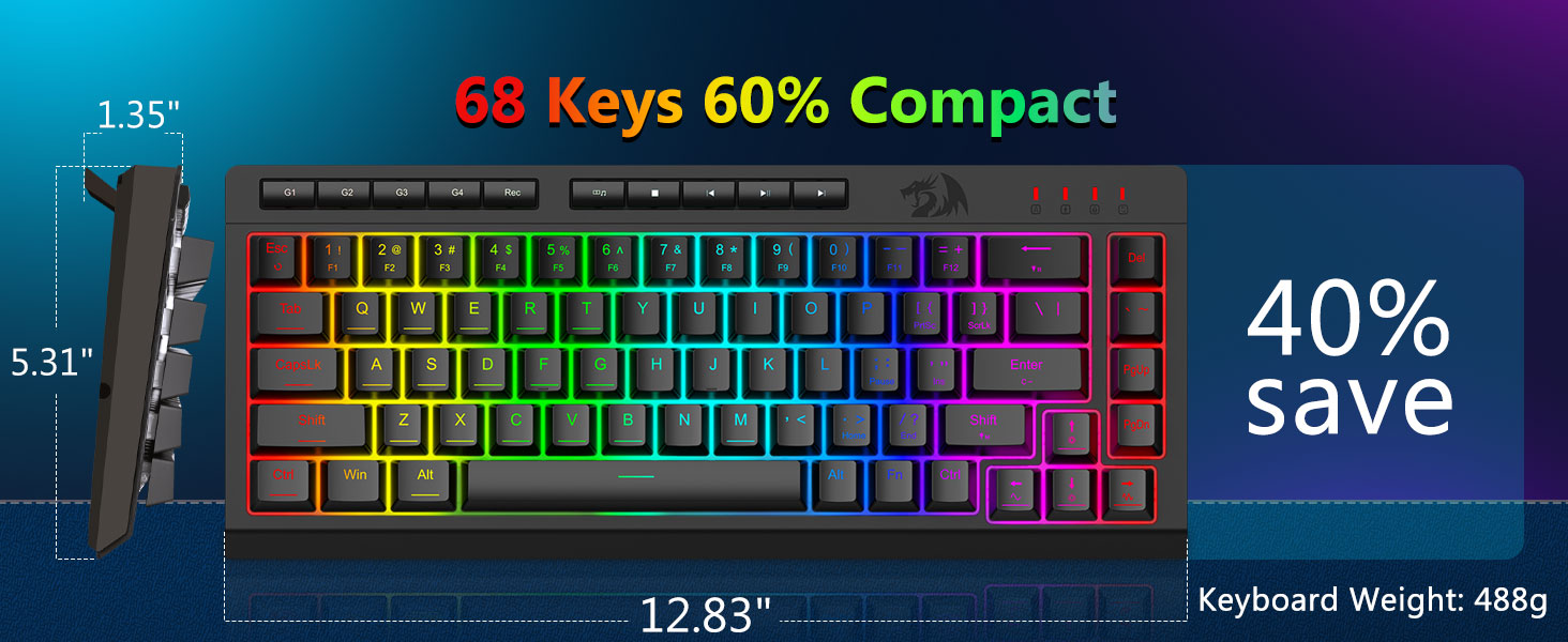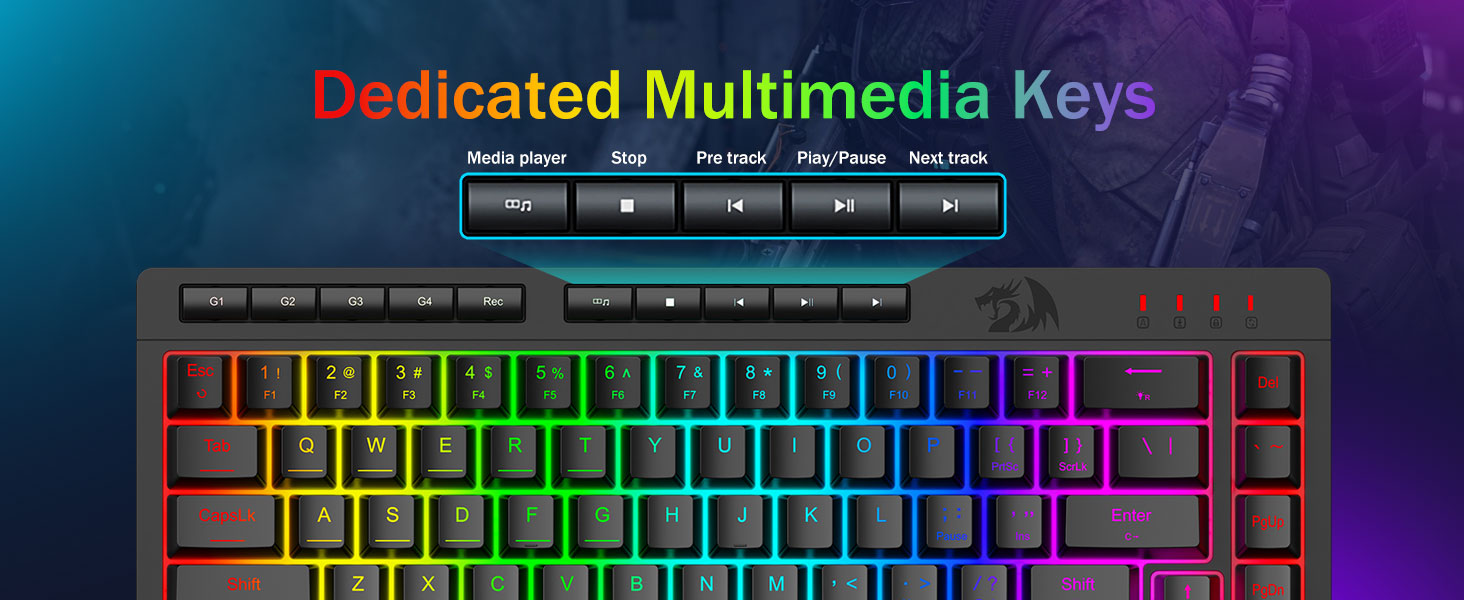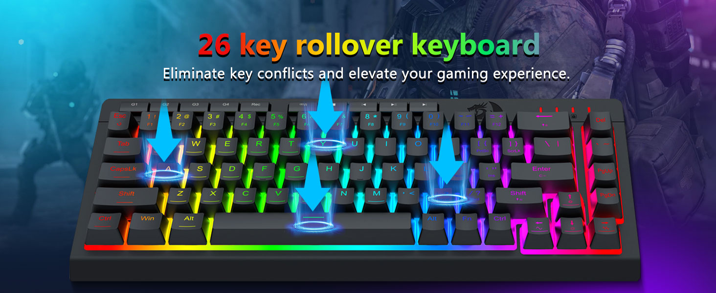 Интегрисано РГБ осветљење побољшава видљивост кључних у мрачним окружењима. Систем осветљења нуди више режима, омогућавајући корисницима да подесе осветљеност и ефекте према својим жељама.