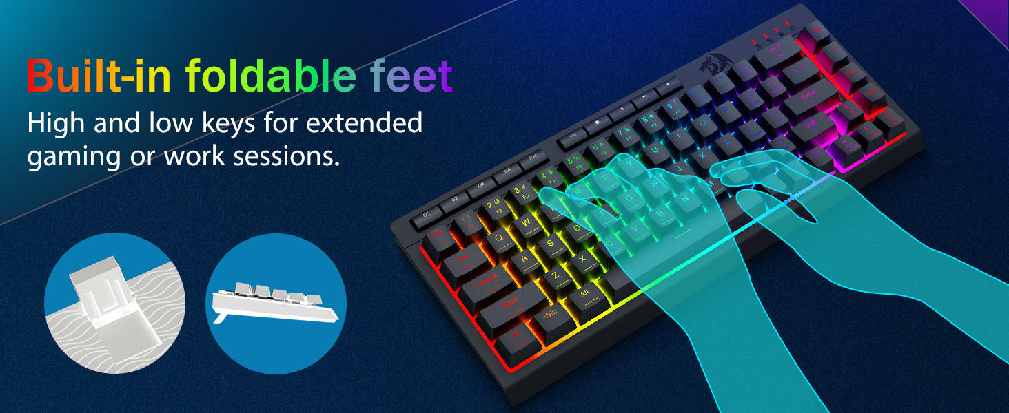 Капице за тастере су дизајниране за издржљивост и конзистентну текстуру, помажући у одржавању удобности током дугих периода. РГБ осветљење је равномерно распоређено, побољшавајући видљивост без ометања.