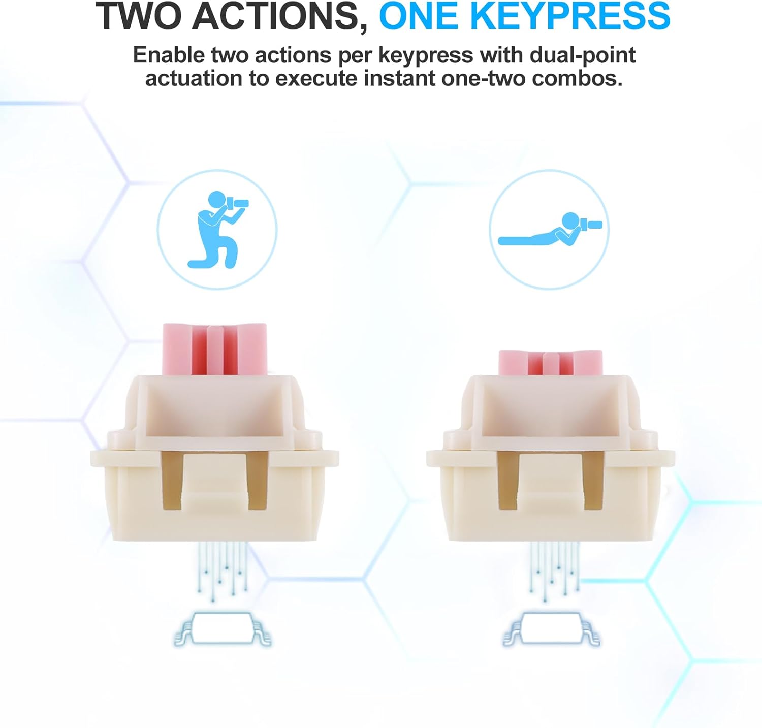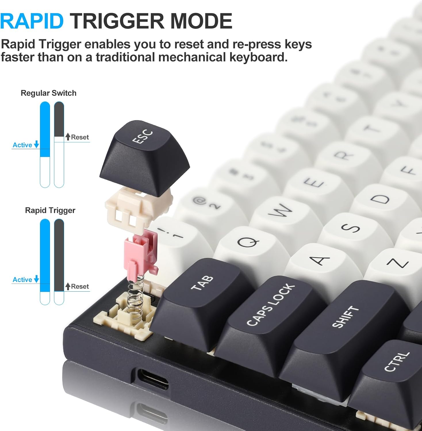 Функција брзог окидања омогућава да се тастери одмах ресетују када се отпусте, уместо да чекају фиксну тачку ресетовања. Ово омогућава брже поновљене притиске на тастере и прецизнију контролу, посебно корисно у такмичарским сценаријима игара као што су ФПС или игре засноване на ритму.