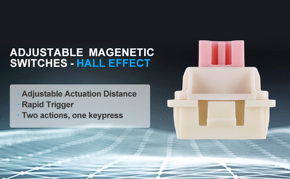 О: Магнетни прекидачи користе сензоре са Холовим ефектом да детектују кретање кључа, омогућавајући подесиве тачке активирања и доследне перформансе. Ово смањује хабање и пружа лакше искуство куцања у поређењу са традиционалним механичким прекидачима.