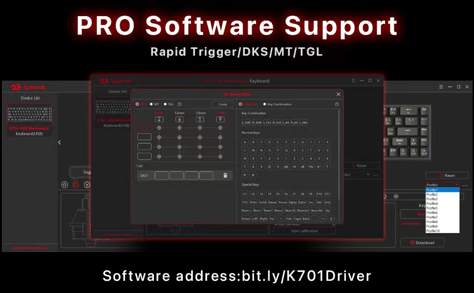 Бела/плаво-црна К701 Рапид Триггер 60% жичани магнетни прекидач механичка тастатура за игре је дизајнирана за кориснике који дају предност прецизности, брзини и компактном облику. Његова комбинација технологије магнетног прекидача, функције брзог окидања и издржљиве конструкције чини га поузданом опцијом и за играње и за продуктивност.