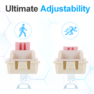 Поклопци тастера су дизајнирани за издржљивост и конзистентну текстуру, обезбеђујући угодан осећај при куцању. Стабилизатори су подешени да смање колебање тастера, побољшавајући укупну стабилност куцања.