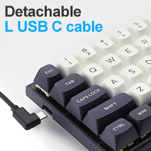 Тастатура има минималистички дизајн са чистом белом или плаво-црном шемом боја, погодном и за играње и за професионална окружења. Компактна структура омогућава корисницима да одржавају организованији радни простор.