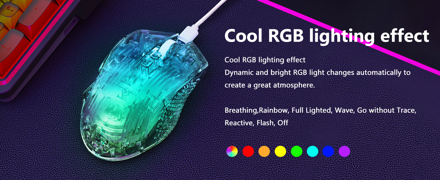 Миш укључује осам РГБ светлосних ефеката који побољшавају визуелну привлачност без утицаја на перформансе. Корисници могу да се пребацују између режима осветљења у складу са њиховим подешавањем или личним преференцијама.