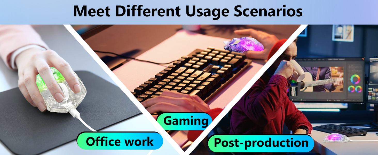 Осим играња игара, миш се добро понаша у канцеларијским окружењима, подржавајући задатке као што су уређивање докумената, прегледање и управљање подацима.