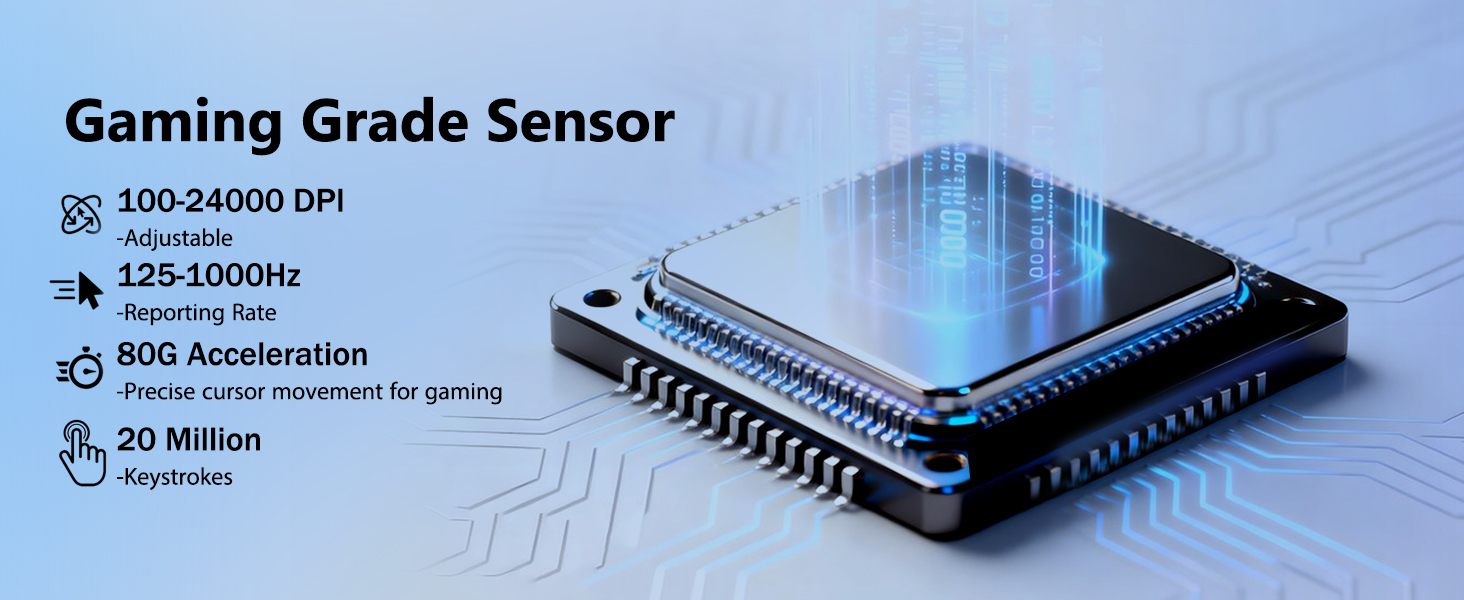 Миш је опремљен напредним оптичким сензором који може да достигне до 24.000 ДПИ. Ово омогућава корисницима да подесе осетљивост према различитим сценаријима, од прецизног циљања у игрицама до брзог кретања курсора преко великих екрана.