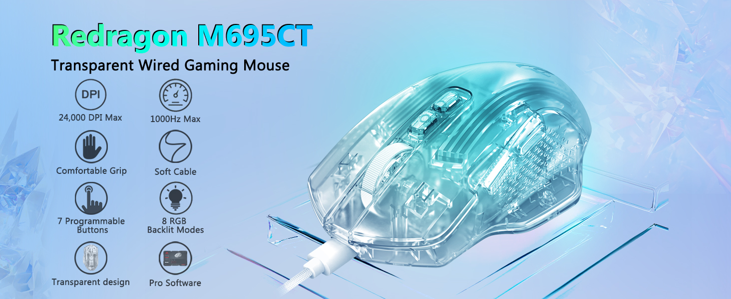 Бели М695ЦТ 24.000 ДПИ 8 РГБ ЛЕД позадинско осветљење, жичани миш за игре пружа уравнотежену комбинацију прецизности, стабилности и употребљивости. Његов сензор високих перформанси, подесива осетљивост и ергономски дизајн чине га погодним и за играње и за свакодневне задатке.